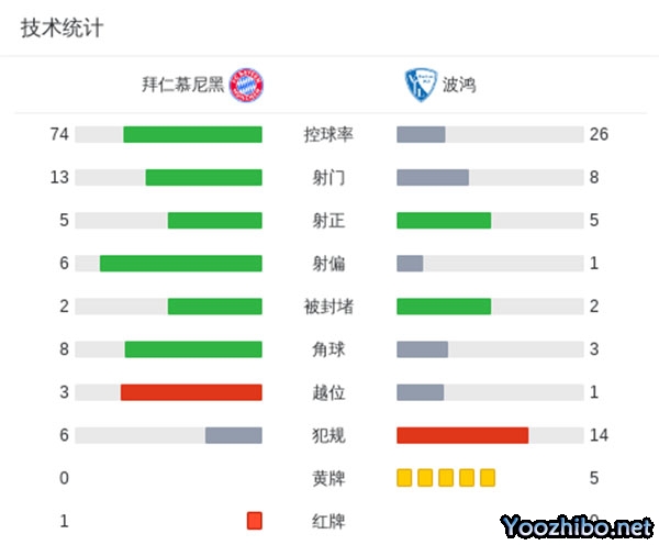 十人拜仁2-3遭波鸿逆转 格纳布里失点帕利尼亚直红
