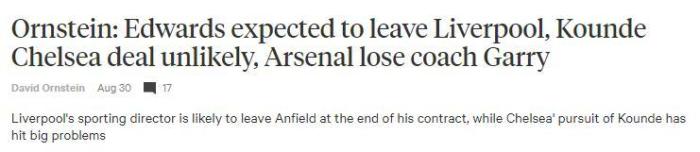 JRS直播网8月31日讯 据TheAthletic报道,利物浦体育总监爱德华兹将在本赛季结束后离开。