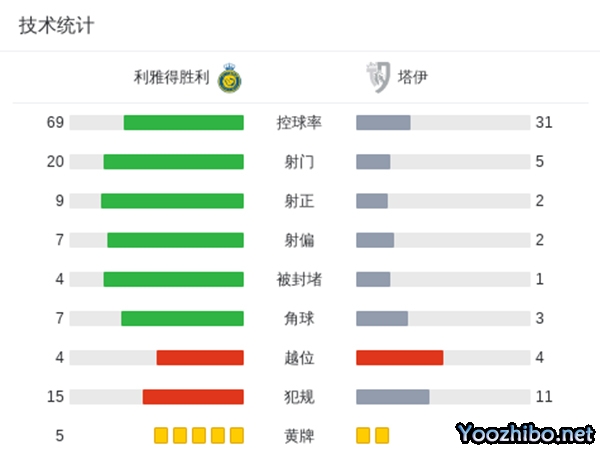 全场战罢,利雅得胜利最终比分5-1大胜塔伊。